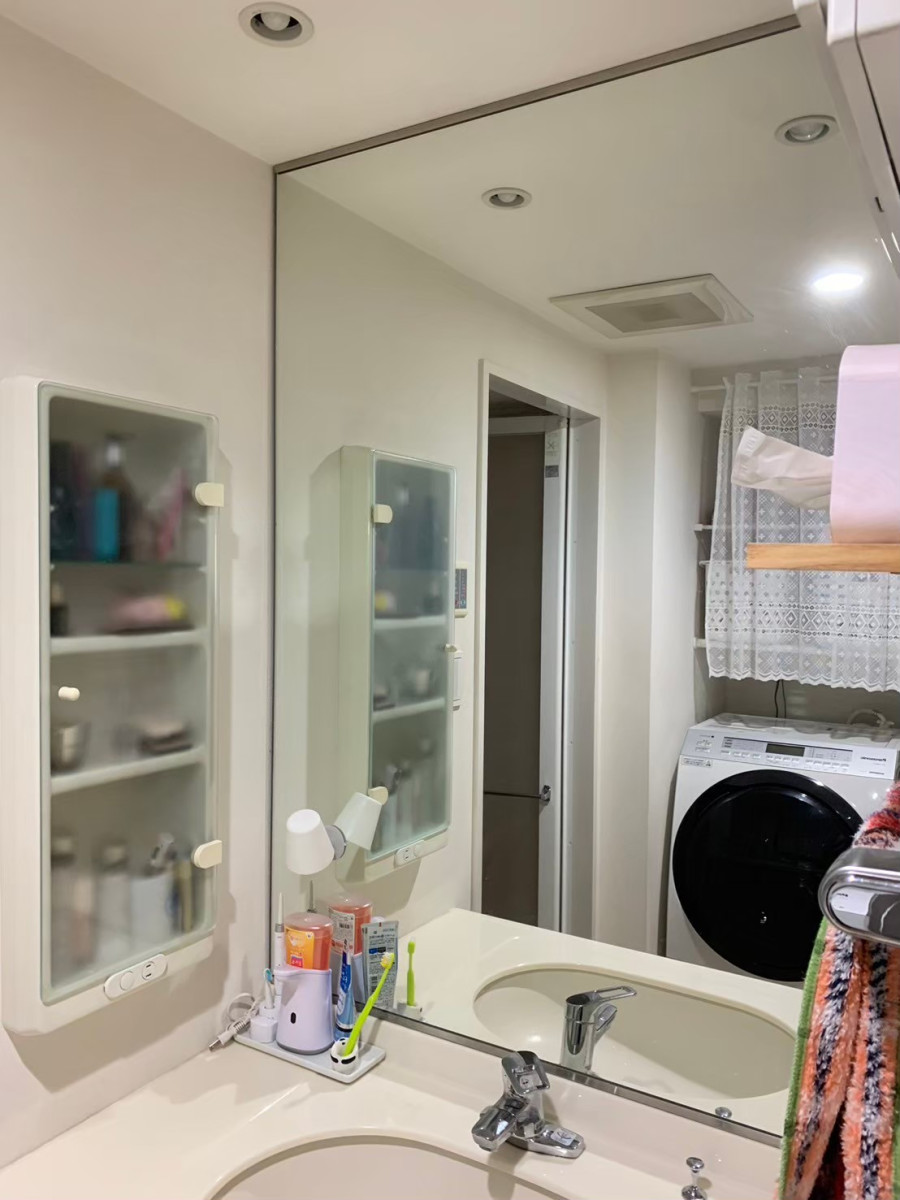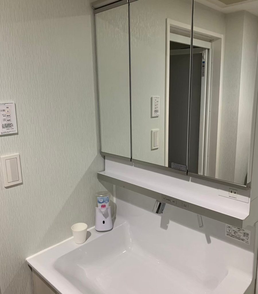 洗面はTOTOのオクターブで他社とは違って引き出しが片引き戸になっていて収納力を増やすことができました。
