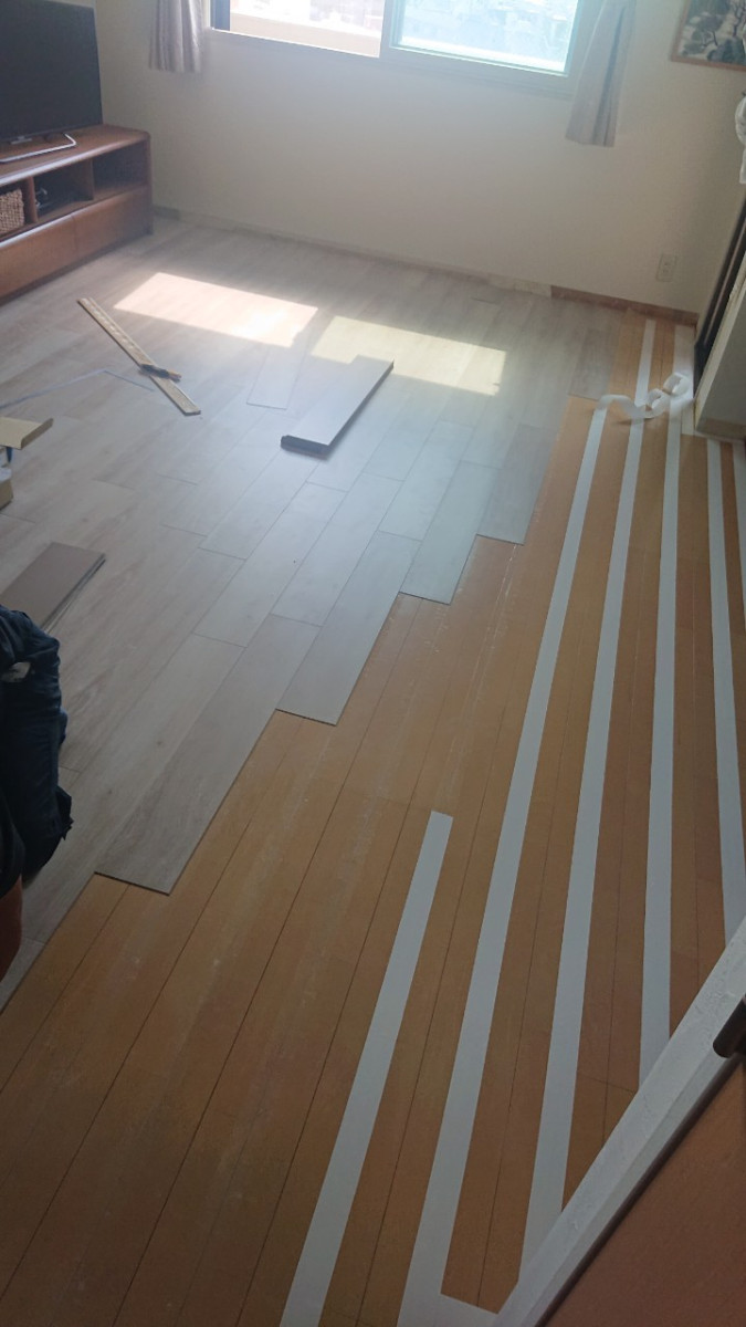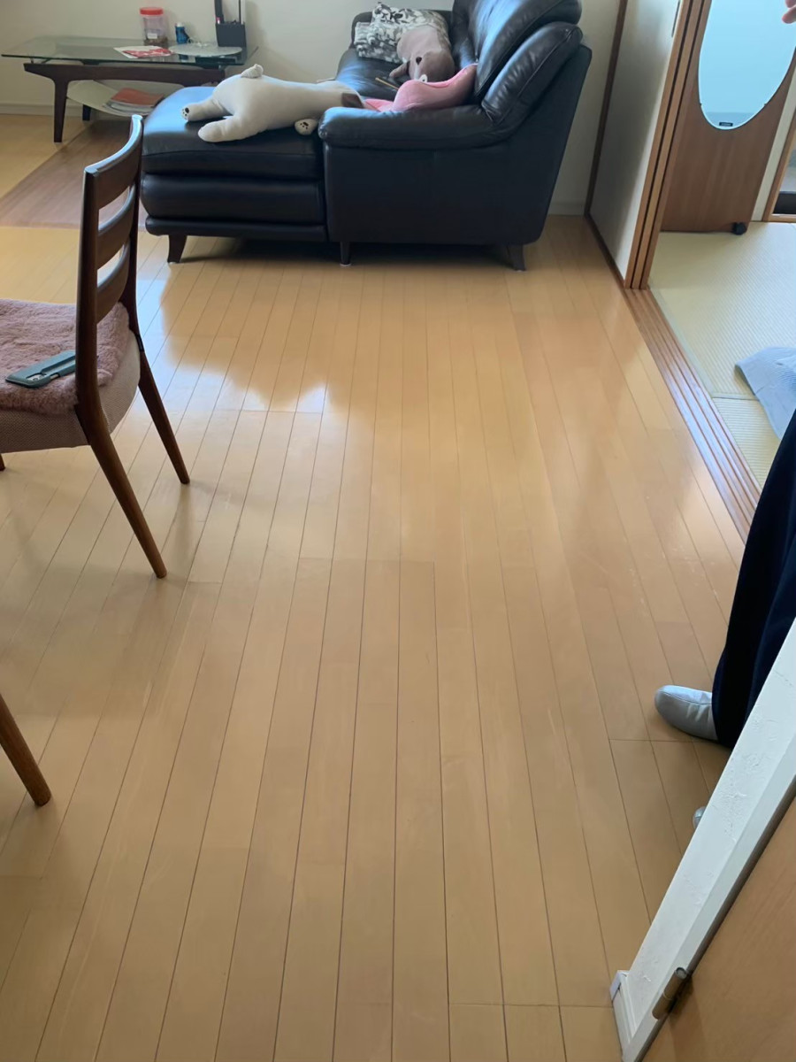 - フローリングが少し表面に痛みがあったのでパナソニックの厚さ1.5ミリのウスイータを貼りました。元々下地はしっかりしていたため、綺麗になったと喜んでいただきました。